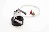 The stainless steel electrochemical detection Auxiliary Electrode block has alignment pins that insure the thin-layer gasket and working electrode are properly aligned when assembled. The auxiliary electrode includes a phenolic base, arms, and inlet/exit connections. Order complete electrochemical detector flow cell package, or individual auxiliary electrode parts, including the three parts of the clamping mechanism. There are four auxiliary electrode styles available, cross flow with down-stream reference electrode, cross flow with reference electrode port, arc flow, and radial flow. If fraction collection or connection to a second detector (UV, fluorescence, or MS) is required, then the cross-flow with reference port (MF-1092) should be used. Otherwise, for cross-flow applications we recommend the downstream reference configuration (MF-1093).