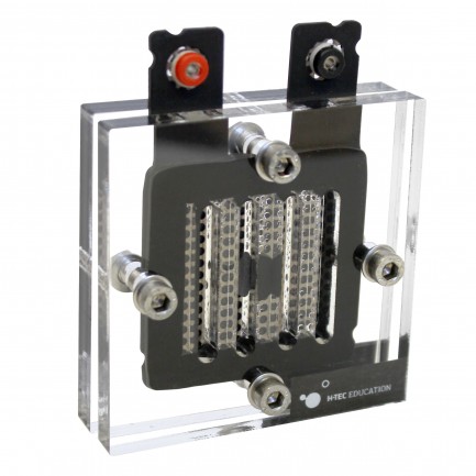 H-TEC 1-Cell Rebuildable PEM Fuel Cell Kit contains a Proton Exchange Membrane Fuel Cell (PEMFC) that can be completely disassembled and then reassembled especially for education and research purposes. The PEM fuel cell can run in Hydrogen/oxygen or hydrogen/air operation modes. All the tools needed for assembly are included!