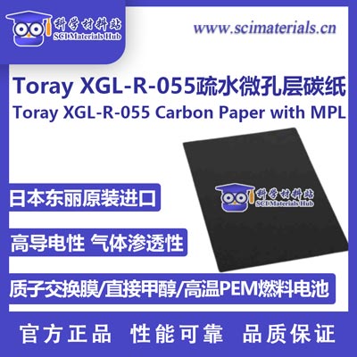 Toray XGL-R-055 是日本东丽(Toray)开发的高性能燃料电池用气体扩散层(GDL),采用高导电碳纤维基纸为载体,并在其表面均匀涂覆一层疏水微孔层(Microporous Layer, MPL)。该结构兼具优异的导电性、气体渗透性及机械强度,是质子交换膜燃料电池(PEMFC)、水电解槽及氢能相关电化学装置的理想扩散层材料。