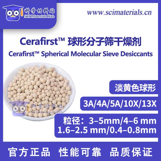Cerafirst™ 球形分子筛干燥剂是一种具有均匀微孔结构的结晶性硅铝酸盐吸附材料,能够选择性吸附不同分子直径的气体与水分子。通过控制分子筛晶体孔径(如 3A、4A、5A、10X、13X 型),可获得不同的吸附特性。在高达 230 ℃ 的条件下仍能保持良好的结构稳定性与吸附容量,是气体干燥、空气净化及中空玻璃除湿等领域的理想材料。