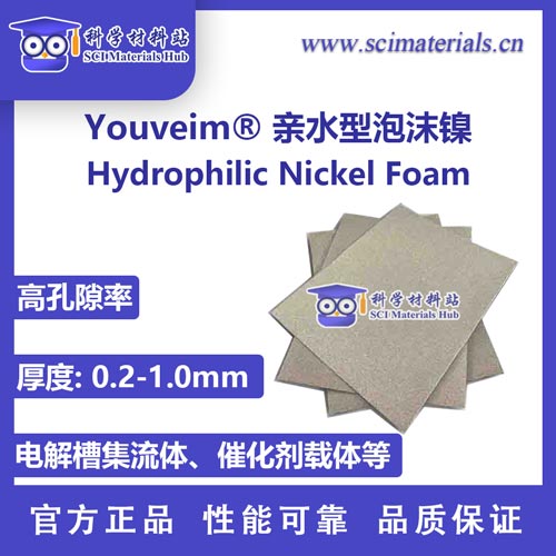 Youveim® 亲水型泡沫镍采用优质镍基材,通过专有亲水表面处理工艺获得稳定的高亲水性,同时保持金属基体的高孔隙率、高导电性、机械强度与耐腐蚀性。泡沫镍孔径均匀、面密度可控,适用于电化学设备、催化载体、过滤分离及液体管理结构。